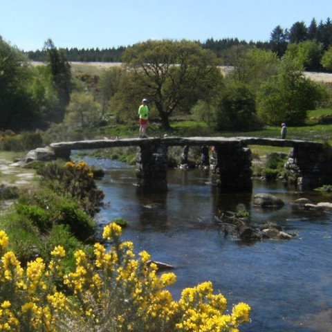 Standing on the clapper bridge at Postbridge, Dartoor